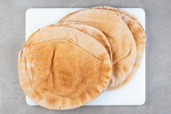 Die Brote mit einigen Tropfen Wasser befeuchten und 4–6Min. im Ofen erwärmen, bis die Ränder knusprig sind.