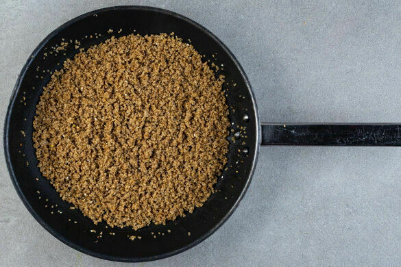 Das Fleisch in einer zweiten großen Pfanne mit 1EL Olivenöl bei mittlerer Hitze auf jeder Seite 4–5Min. braten, bis das Fleisch goldbraun und gar ist. Die Pfanne vom Herd nehmen und das Fleisch abgedeckt warm halten.