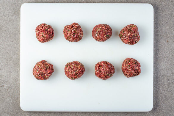 Die Hackbällchen in einer mittelgroßen Pfanne mit 1EL Olivenöl bei mittlerer Hitze rundum 8–12Min. anbraten, bis sie goldbraun und gar sind.