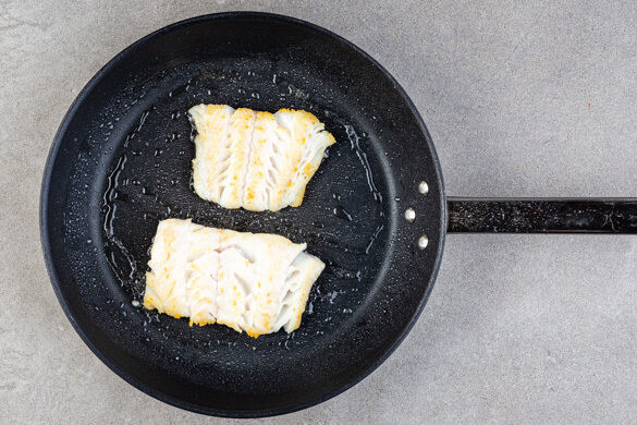 Den Fisch mit kaltem Wasser abspülen, trocken tupfen und evtl. vorhandene Gräten mit einer Pinzette entfernen. Den Fisch mit je 1 Prise Salz und Pfeffer würzen und in einer großen Pfanne mit 2EL Olivenöl bei mittlerer Hitze auf jeder Seite ca. 2Min. braten, dann aus der Pfanne nehmen und abgedeckt warm halten.