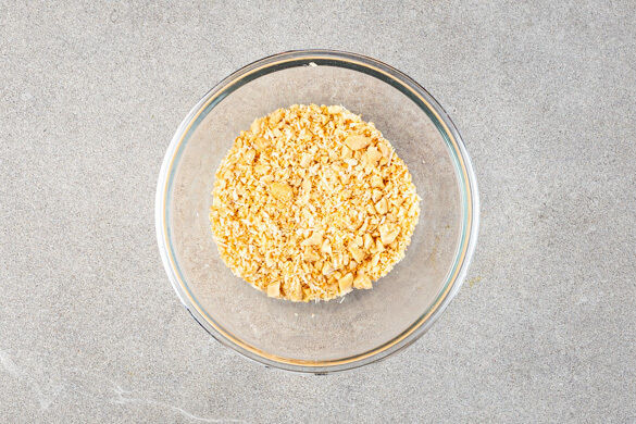Die Erdnüsse fein hacken. Die Kokosraspel in einer kleinen Pfanne ohne Zugabe von Fett bei mittlerer Hitze 1–2Min. goldbraun anrösten, mit den Erdnüssen vermengen und mit Salz abschmecken.