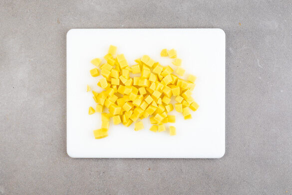 Den Backofen auf 240°C (220°C Umluft) vorheizen. Die Kartoffeln ggf. schälen und in ca. 1cm große Würfel schneiden.