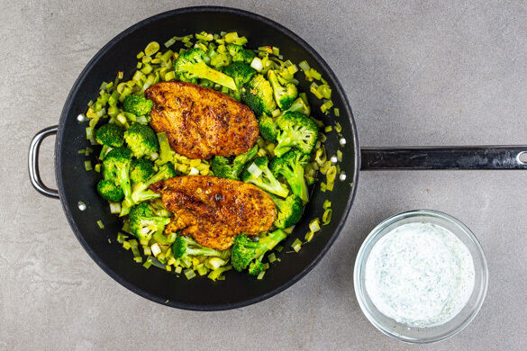 In der Kürze liegt die Würze! So bereitest du heute dein Hähnchen zu, denn vor dem Anbraten gibst du ihm ganz fix eine aromatische Massage aus marokkanischen Gewürzen. Auch Brokkoli und Lauch bekommen eine kleine Luxus-Behandlung, sie werden nämlich in goldener Safranbrühe geschmort. Und Safran gilt als eines der edelsten und teuersten Gewürze überhaupt! Mit lockerem Bulgur und Kräuter-Joghurt serviert, einfach köstlich.