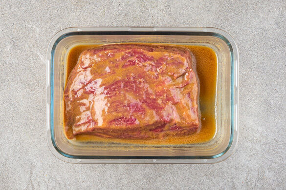Das Fleisch trocken tupfen. Die Zitronenschale abreiben, dann die Zitrone halbieren und auspressen. Die Misopaste mit der 1/2 des Sesamöls und der 1/2 des Zitronensafts verrühren. Das Fleisch mit der Würzsauce vermengen und beiseitestellen.