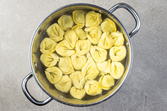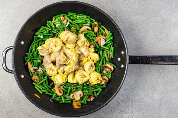 Allein beim Anblick dieser Delikatesse läuft einem schon das Wasser im Munde zusammen – wie soll das erst werden, wenn man den ersten Bissen auf die Gabel nimmt, die Augen schließt ... und ... Ach, aber zuerst muss der wohlverdiente Gaumenschmaus ja zubereitet werden! Die mit Pesto gefüllten Tortelloni sind mit der herrlich trüffeligen Pilzsauce und den zitronigen, grünen Bohnen in ihrem Element. Immer eine Traumreise wert!