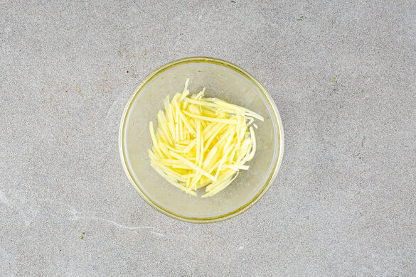 4EL hellen Essig mit 2EL Zucker und 1 kräftigen Prise Salz verrühren und mit dem Ingwer vermengen, bis er vollständig mit der Flüssigkeit bedeckt ist.