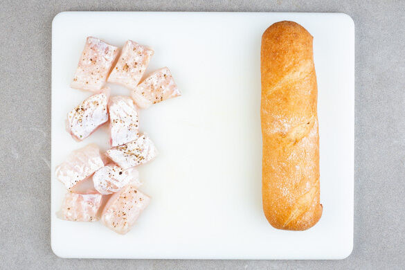 Den Fisch mit kaltem Wasser abspülen, trocken tupfen und evtl. vorhandene Gräten mit einer Pinzette entfernen, dann mit 2EL Mehl, 1/2TL Salz und 1 Prise Pfeffer vorsichtig vermengen. Das Brötchen 6–8Min. im Ofen aufbacken.