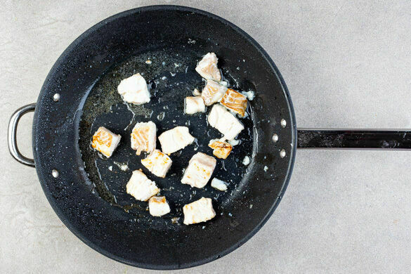Den Sumach mit 6EL Mayonnaise verrühren. Den Fisch in einer großen Pfanne mit 2EL Butter bei mittlerer bis starker Hitze 2–3Min. auf jeder Seite gar braten, dabei vorsichtig wenden.