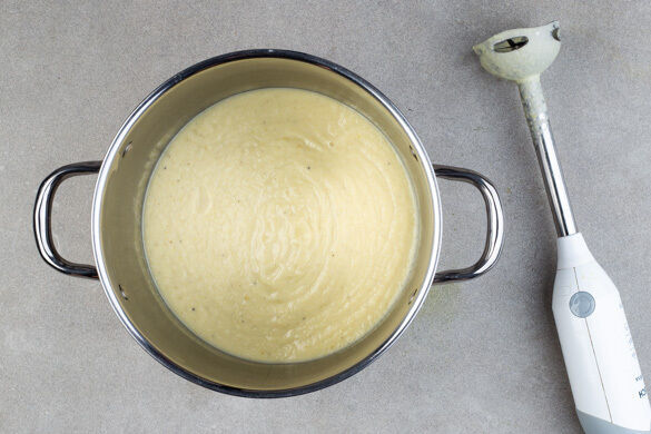 Das Brühgewürz mit 800ml Wasser in den Topf geben. Nach Bedarf mehr Wasser zufügen, sodass die Zutaten vollständig von Flüssigkeit bedeckt sind. Die Suppe bei mittlerer Hitze abgedeckt 12–15Min. kochen, bis der Blumenkohl weich ist.