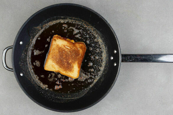 Die 1/2 der Sandwiches in einer großen Pfanne mit 1EL Butter bei mittlerer Hitze abgedeckt 4–5Min. braten, wenden und bei mittlerer bis starker Hitze 3–4Min. goldbraun und knusprig braten. Den Vorgang mit den restlichen Sandwiches wiederholen oder ggf. eine zweite große Pfanne benutzen.
