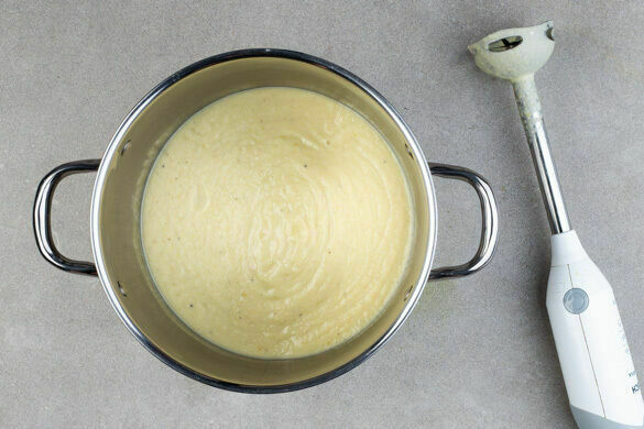 Das Brühgewürz mit 1,6L Wasser in den Topf geben. Nach Bedarf mehr Wasser zufügen, sodass die Zutaten vollständig von Flüssigkeit bedeckt sind. Die Suppe bei mittlerer Hitze abgedeckt 12–15Min. kochen, bis der Blumenkohl weich ist.