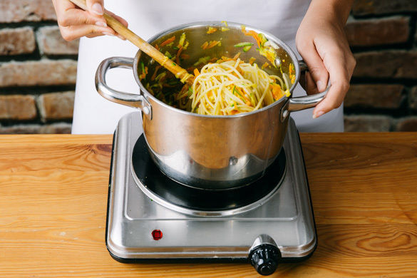 Noch vor 40 Jahren war die Zucchini in Deutschland kaum bekannt, heute zählt sie zu den beliebtesten Gemüsesorten in unseren Gärten und auf unseren Tellern! Kein Wunder bei ihrem sommerlich-frischen Geschmack und ihrer Vielseitigkeit. Für dieses schnelle Pastagericht wird sie geraspelt mit Karotte angebraten und anschließend in einer köstlichen Sauce mit Crème fraîche, Spaghetti und zartem Hühnchen serviert.