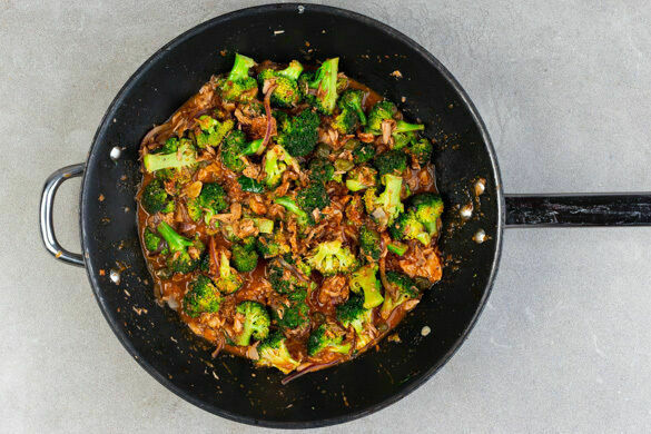 Die Zwiebeln und den Brokkoli in einer großen Pfanne mit 2EL Thunfischöl und 1EL Sardellenöl bei starker Hitze 3–4 Min. anbraten. Den Knoblauch dazugeben, ca. 1Min. braten, mit 300ml Pastawasser ablöschen und ca. 3Min. köcheln, bis der Brokkoli weich ist. Den Fisch, die Kapern und das Pesto einrühren und 2–3Min. köcheln. Ggf. mehr Pastawasser dazugeben.