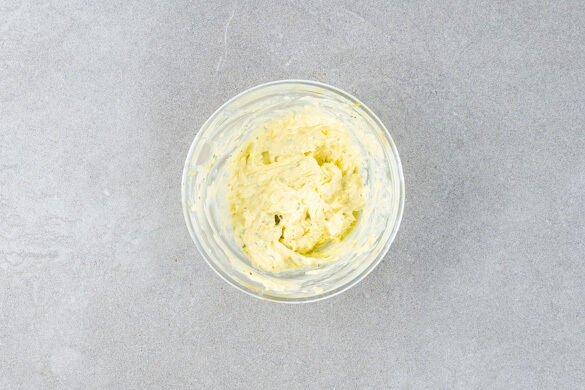 Den restlichen Lauch fein hacken und mit dem restlichen Rosmarin in einer kleinen Pfanne mit 1EL Butter und 1 Prise Salz bei niedriger Hitze 5–7Min. anschwitzen. Dann mit ca. 120g Butter vermengen, mit je 1 kräftigen Prise Salz und Pfeffer würzen und bis zum Servieren in den Kühlschrank stellen.