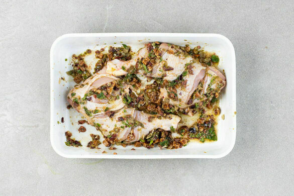 Einen stressigen Tag gehabt? Jetzt ist es an der Zeit, sich zurückzulehnen und die Hähnchenschenkel in aller Ruhe in einer köstlichen Sauce aus Oliven, Feigen, Kapern und Oregano im Ofen schmoren zu lassen. Denn was gibt es Besseres als mit seinen Lieben entspannt am Tisch zu sitzen und saftiges Hähnchen mit einem cremigen Gemüsepüree zu genießen, in dem so viel Geschmack und doch so wenig Aufwand steckt?