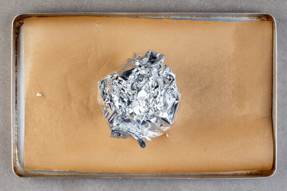 Den Sellerie mit einem Sparschäler oder scharfen Messer schälen, mit 1EL Olivenöl und 1/2TL Salz einreiben und in Alufolie wickeln. Auf einem mit Backpapier ausgelegten Backblech in den Ofen schieben, auch wenn dieser noch nicht ganz heiß sein sollte.