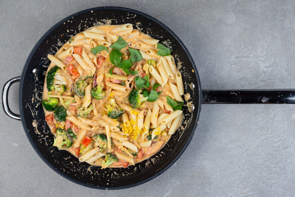 Heute gibt’s ein fix gemachtes Pastagericht mit viel Geschmack: leckere Penne in einer aromatisch-cremigen Sauce mit getrockneten Tomaten und Cashewkernen, fein abgeschmeckt mit Zitronenschale und Basilikum. Brokkoli verleiht dem Ganzen zusätzlichen Biss, als Topping gibt es würzige Rauchmandeln – das steht auf dem Tisch, bevor du „Buon appetito!“ sagen kannst!