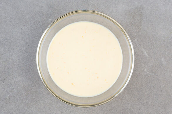Den Ricotta mit den Eiern, 2TL Orangenschale, dem Orangensaft, 4–5EL Milch, 4EL Zucker und 1 Prise Salz cremig verrühren.