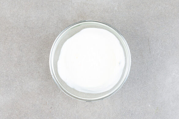 Den Knoblauch aus dem Bohnentopf nehmen, mit 2EL Joghurt in ein hohes Gefäß geben und mit einem Stabmixer glatt pürieren. Dann mit der 1/2 des restlichen Joghurts verrühren und mit Salz und Pfeffer abschmecken.