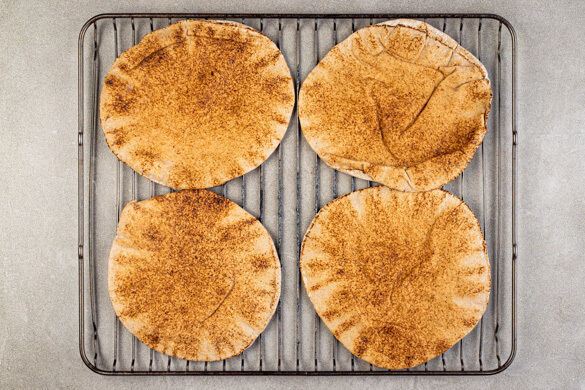 Die Brote mit etwas Wasser besprenkeln und auf dem Ofenrost ca. 2Min. aufbacken.