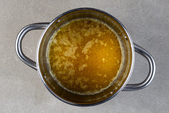 Den Backofen auf 200°C (180°C Umluft) vorheizen. Tipp: Die Sahne und den Joghurt bis zur Verwendung im Kühlschrank aufbewahren. Die Butter in einem kleinen Topf mit 150g Zucker und 1 kräftigen Prise Salz bei niedriger Hitze ca. 5Min. schmelzen lassen, dabei gelegentlich umrühren. Achtung: Die Butter soll nicht bräunen!
