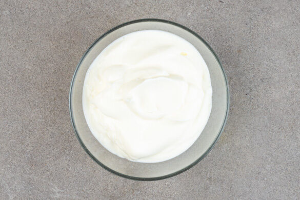 Mit einem Handrührgerät die Sahne steif schlagen, dabei 50g Zucker einrühren. Anschließend vorsichtig den Joghurt unterheben. Tipp: Wer möchte, kann auch etwas Whisky unter die Creme heben.