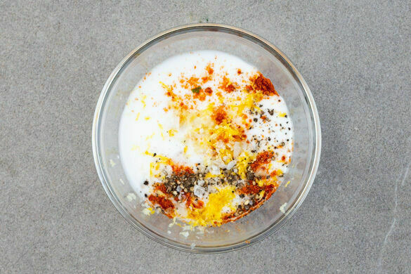 Die Tomaten, die Zwiebeln und den Koriander mit 2–3EL Zitronensaft sowie je 1 Prise Salz und Pfeffer zu einer Salsa vermengen.
