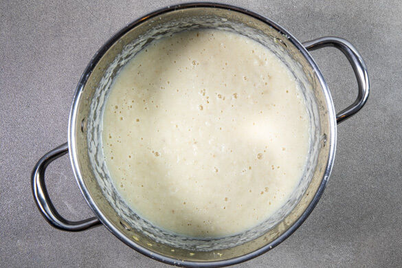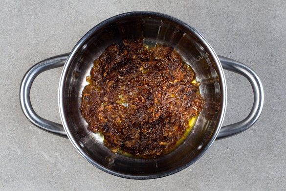 Die Schalotten schälen, halbieren und in feine Streifen schneiden, dann in einem kleinen Topf mit 1EL Butter, 3TL Zucker, 1/2TL Salz und 1EL Balsamicoessig bei niedriger bis mittlerer Hitze 5–7Min. karamellisieren, bis die Schalotten goldbraun und klebrig sind. Gelegentlich umrühren.