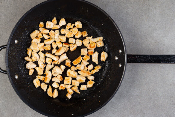 Das Fleisch trocken tupfen, anschließend in einer mittelgroßen Pfanne mit 1EL Olivenöl und 1/2TL Salz bei sehr starker Hitze ca. 2Min. scharf anbraten und aus der Pfanne nehmen.