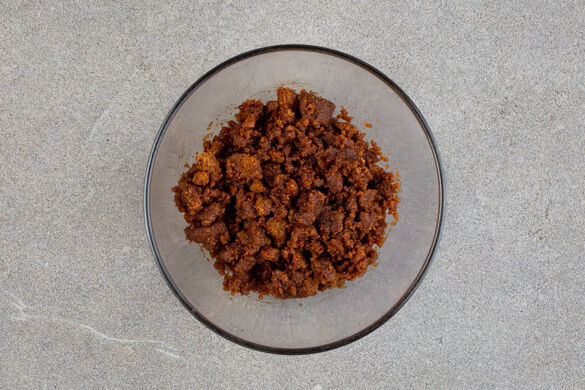 Die Schlagsahne bis zur Verwendung im Kühlschrank aufbewahren. Die Kekse in einen Gefrierbeutel geben und mit einer schweren Pfanne oder einem Nudelholz zu kleinen Bröseln zerstoßen. 2EL Butter in einem kleinen Topf oder der Mikrowelle schmelzen und die Keksbrösel mit 1 Prise Salz untermengen.
