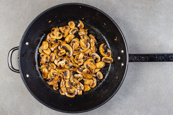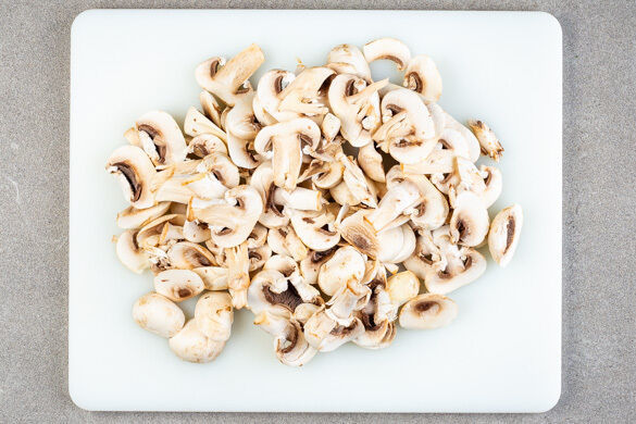Die Pilze ggf. säubern und in grobe Scheiben schneiden.